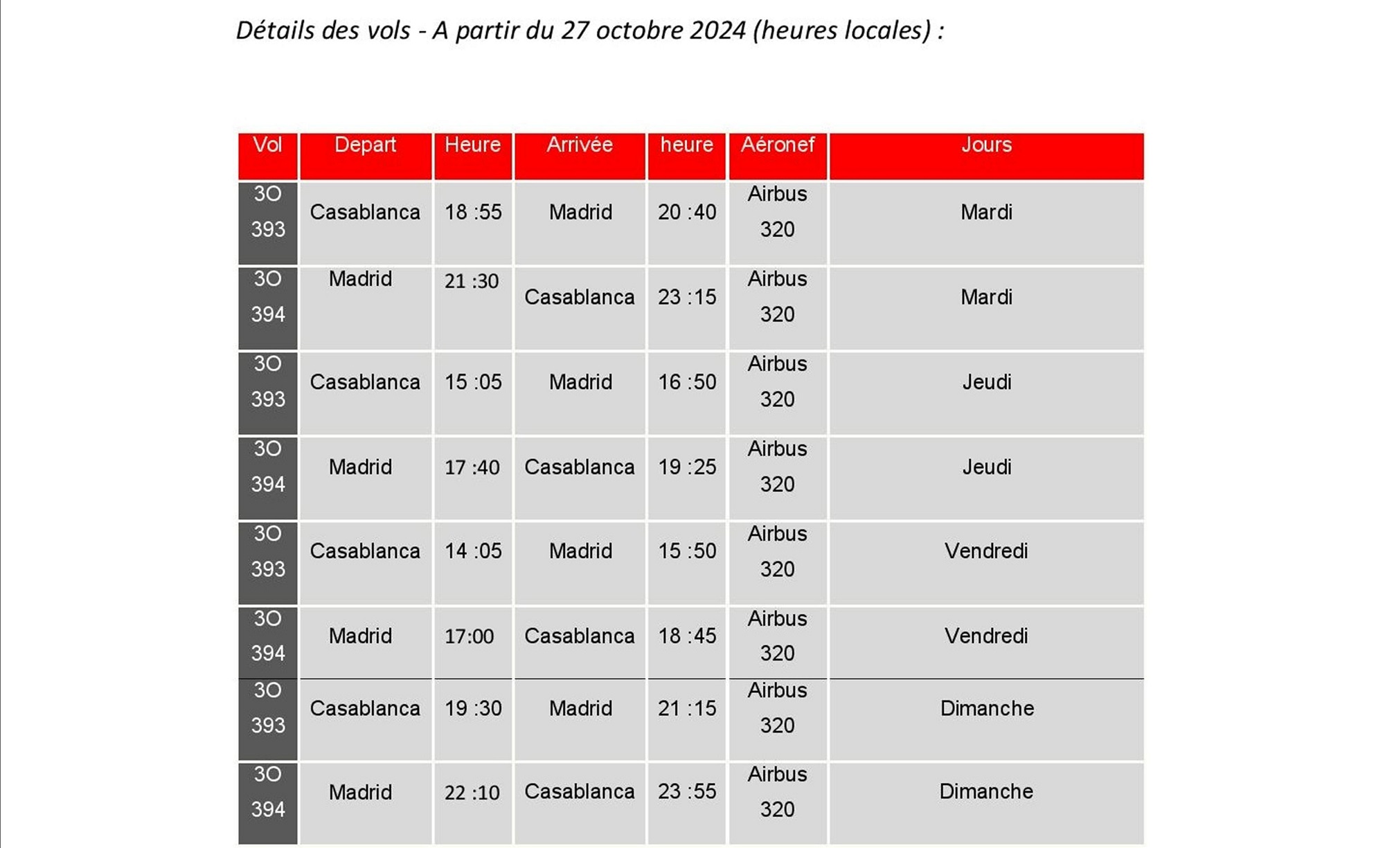 Air Arabia reliera la capitale espagnole quatre fois par semaine (mardi, jeudi, vendredi et dimanche).