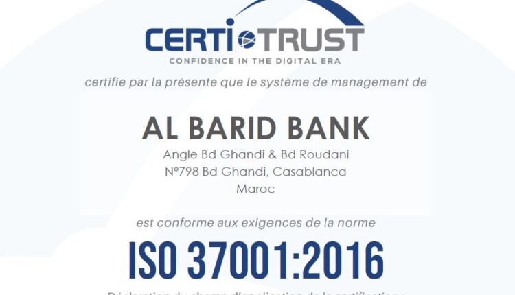 Al Barid Bank obtient la certification ISO 37001 pour son système de management anti-corruption (SMAC)
