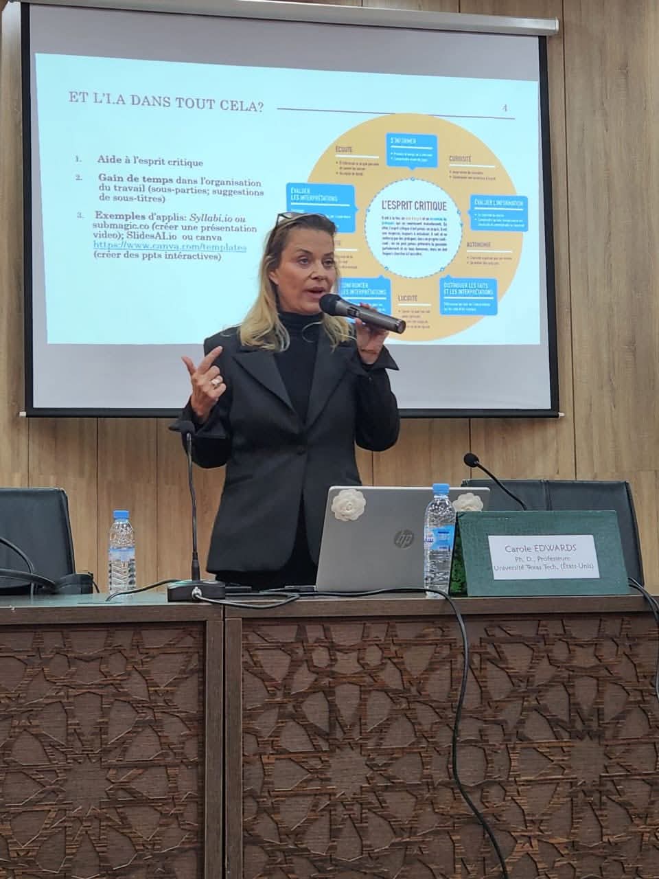 Le séminaire a été animé par Carole Edwards, professeure titulaire à Texas Tech University (États-Unis) et spécialiste reconnue des littératures francophones contemporaines. Son parcours académique international, enrichi par un attachement scientifique durable au Maroc, a donné lieu à des échanges approfondis et particulièrement féconds.