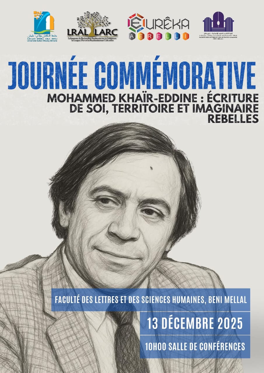 Organisée par le Laboratoire LRALLARC, en partenariat avec l’Association Eurêka, la rencontre examinera l’œuvre de Khaïr-Eddine à partir de quelques lignes de force : l’écriture de soi, la relation au Souss comme espace vécu et imaginé, la tension entre errance, mémoire et appartenance, ainsi que le travail mené dans et entre plusieurs langues (français, arabe, amazighe).