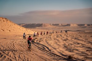 La deuxième journée a proposé une étape combinant VTT et marche nordique, sur une distance de plus de 25 kilomètres, conduisant les participantes vers la spectaculaire Dune Blanche, joyau naturel de la région.