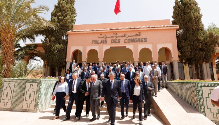 Le Chef du gouvernement, M. Aziz Akhannouch, accompagné du ministre de l’Equipement et de l’Eau, du ministre de la Santé et de la Protection sociale, du ministre de l’Agriculture, de la Pêche maritime, du Développement rural et des Eaux et Forêts, de la ministre du Tourisme, de l’Artisanat et de l’Economie sociale et solidaire, du ministre de l’Enseignement supérieur, de la Recherche scientifique et de l’Innovation, ainsi que du wali de la région de Draa-Tafilalet et du président du conseil de la région de Draa-Tafilalet, a visité vendredi 16 juin 2023, une série de projets sociaux et économiques et supervisé la signature de conventions de développement dans la province de Ouarzazate. Ces activités s’inscrivent dans le cadre de la poursuite de la visite de terrain qu’effectue le Chef du gouvernement dans la région de Draa-Tafilalet, en vue d’accompagner les efforts de développement au niveau régional, conformément à la volonté de SM Le Roi Mohammed VI, que Dieu l’assiste.