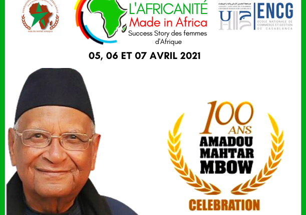 Le Maroc abrite à l’ENCG de Casablanca le 05, 06 et 07 Avril 2021 la seconde édition duSommet de l’Africanité, occasion à laquelle le Trophée de l’Africanité sera remis au premier Directeurafricain de l’UNESCO le Professeur Amadou Mahtar MBOW en hommage à son parcoursexceptionnel,historiqueetfortexemplaire.