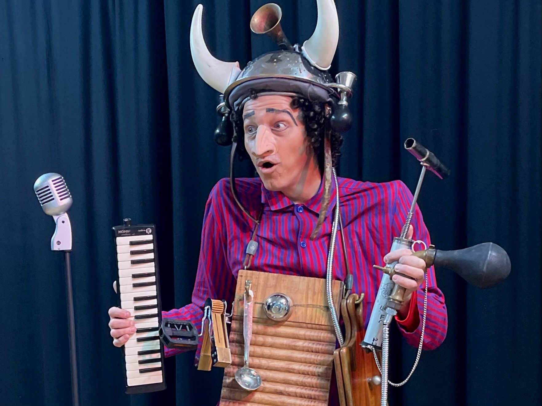 Un clown veut dormir, mais une mouche l’en empêche, bzzzz ! Dans sa tentative de la faire taire, il trouve des instruments farfelus qui font également du bruit. C’est ainsi que naît une aventure sonore dans laquelle tous finiront par former un grand orchestre : un théâtre participatif pour tous les publics, avec un comédien qui nous invite à retrouver la magie cachée dans une passoire de cuisine ou une vieille planche à laver.