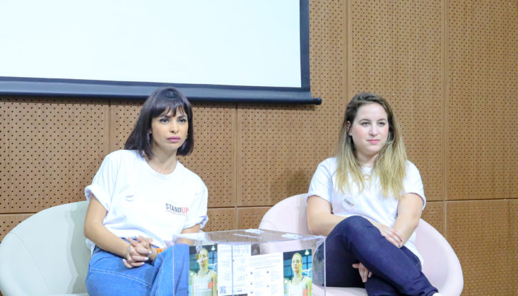 Dans les écoles, les espaces publics, les formations en ligne, Stand Up a pour objectif de former 10 000 personnes la première année du lancement aux 5 étapes: Adresser, Distraire, Déléguer, Documenter, Retarder, programme de formation à l’intervention en tant que témoin approuvée par des experts et lancé par Hollaback! L’intervention en tant que témoin est le terme qui désigne l’action accomplie par le témoin pour calmer la situation et rendre les lieux publics plus sûrs.