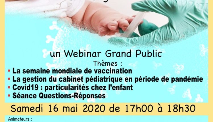 INFOVAC, Maroc, en coopération avec le ministère de la Santé, et en partenariat avec l’Association marocaine des maladies infectieuses pédiatriques et de la vaccination, l’Association marocaine de pédiatrie et les associations pédiatriques de Casablanca, Rabat, Fès, Tanger, Meknès, Marrakech-Tensift, Agadir, El Jadida-Doukkala, se préparent à organiser un séminaire virtuel sans précédent adressé au grand public, sur le virus Covid 19 et la situation épidémiologique dans notre pays, notamment chez les enfants, coïncidant avec la commémoration de la Semaine mondiale de la vaccination, le samedi 16 mai, entre cinq heures et six heures et demie du soir, que chacun peut suivre via le lien suivant: http://infovac.j4tinfo.com